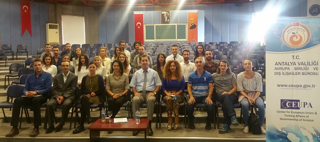 Antalya Valiliği Avrupa Birliği ve Dış İlişkiler Bürosu (CEUPA) ile Akdeniz Üniversitesi Beden Eğitimi ve Spor Yüksekokulu (BESYO) Bilimsel Etkinlikler Koordinatörlüğü işbirliğinde 31 Ekim 2016 Pazartesi günü "Avrupa Birliği Projeleri Bilgilendirme Semineri" düzenlendi. Akdeniz Üniversitesi Beden Eğitimi ve Spor Yüksekokulu Konferans Salonunda 09.30 - 12.30 saatleri arasında gerçekleşen seminere üniversitede görevli akademisyenler ile doktora ve yüksek lisans öğrencilerden oluşan 55 kişi katıldı.