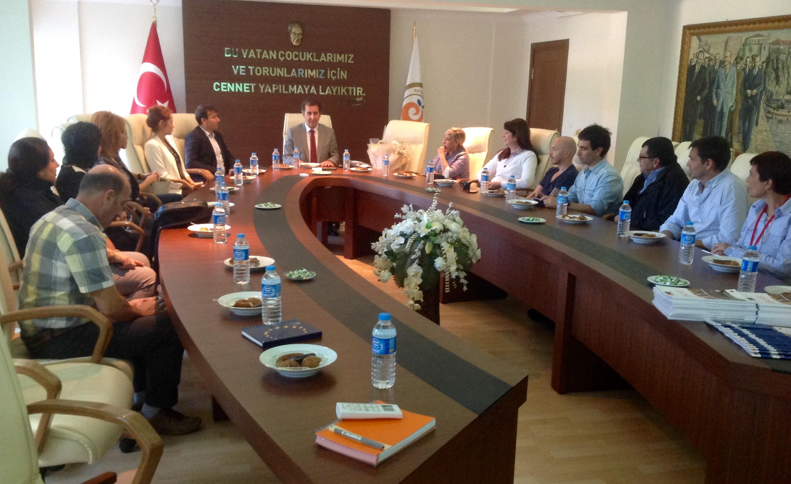 Antalya Valiliği Avrupa Birliği ve Dış İlişkiler Bürosu (CEUPA) ev sahipliğinde Valilik Toplantı Salonunda gerçekleşen ziyarete Antalya Valiliği Avrupa Birliği ve Dış İlişkiler Bürosu (CEUPA) Koordinatörü Baki Karaçay başkanlık etti. Toplantıda proje sahibi Adem Tolunay Anadolu Lisesi yöneticileri ve proje yürütme ekibi, öncelikle projenin hazırlanması sırasında her türlü desteği veren Antalya Valiliğine teşekkür ederek, projenin hibe kazanmasında söz konusu desteğin önemi üzerinde durdular. Proje ortağı ülkelerde yerel düzeyde gerçekleştirilen AB çalışmaları üzerine karşılıklı görüş alış verişi yapılan toplantıda Baki Karaçay, Antalya Valiliği'nin yürütmekte olduğu AB çalışmaları ve yürütülen AB projeleri konusunda bilgil verdi. Bilgilendirmede, Antalya’nın Avrupa Birliği fonlarını kullanarak çok sayıda proje ürettiğine değinilerek bunda İldeki kamu ve sivil toplum kuruluşlarına AB projeleri hazırlanması konusunda düzenlenen seminer ve eğitimlerin etkili olduğunun altı çizildi. Bunun bir göstergesi olarak Antalya’nın son yıllarda Türkiye genelinde AB hibelerinden yararlanan iller arasında ilk sıralarda yer aldığı vurgulandı. Toplantıda ayrıca Valiliğin projeye desteğinin uygulama aşamasında da devam edeceği ve gerektiğinde Avrupalı ortak kurumlara da bu konuda gerekli desteğin verileceği belirtildi.